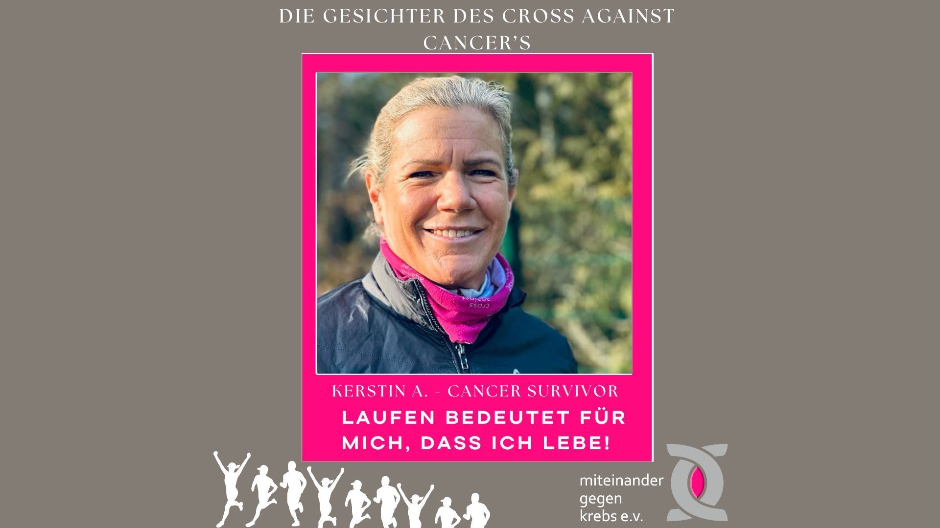 Den Anfang macht Kerstin A., die bereits seit dem ersten Cross against cancer mit dabei ist. Auch sie hatte bereits eine Krebsdiagnose. Der Sport und das Laufen sind für sie ein wichtiger Bestandteil in ihrem Leben!